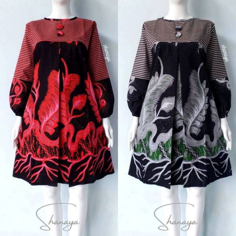 Name: Shanaya Tunik Vallery Pias Dress Batik Solo Printing Grey Merah S M L Xl Xxl
