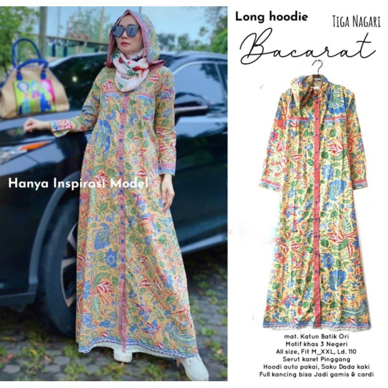 Terlaris Fashion M di Kabupaten Mukomuko Gamis Cardi Hoodie Tiganegri / Long Hoodie Bacarat Tiga Nagari dari Batik Jeng Jani Kota Surakarta (solo)