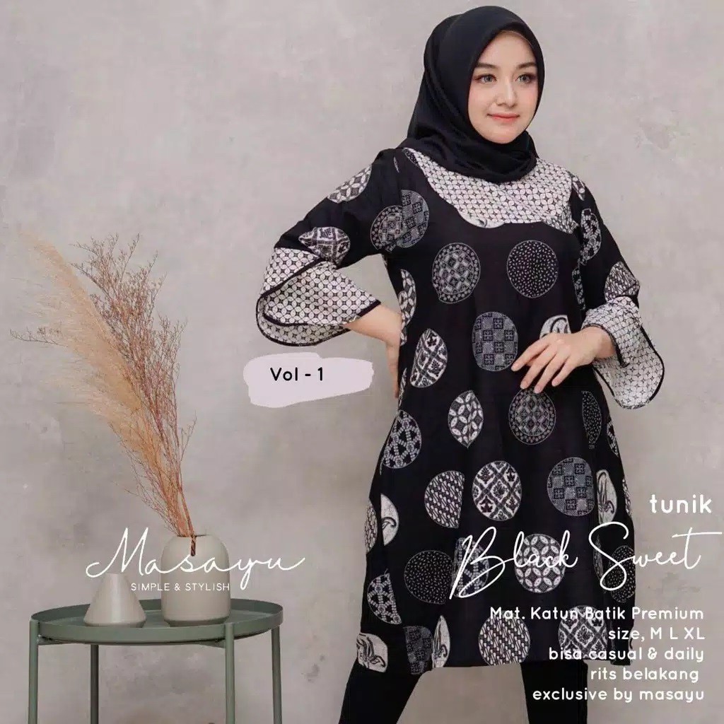 Name: Tunik Black Sweet Batik Batik Solo Handmade Modern Formal Kerja Casual Pesta Kondangan Cantik