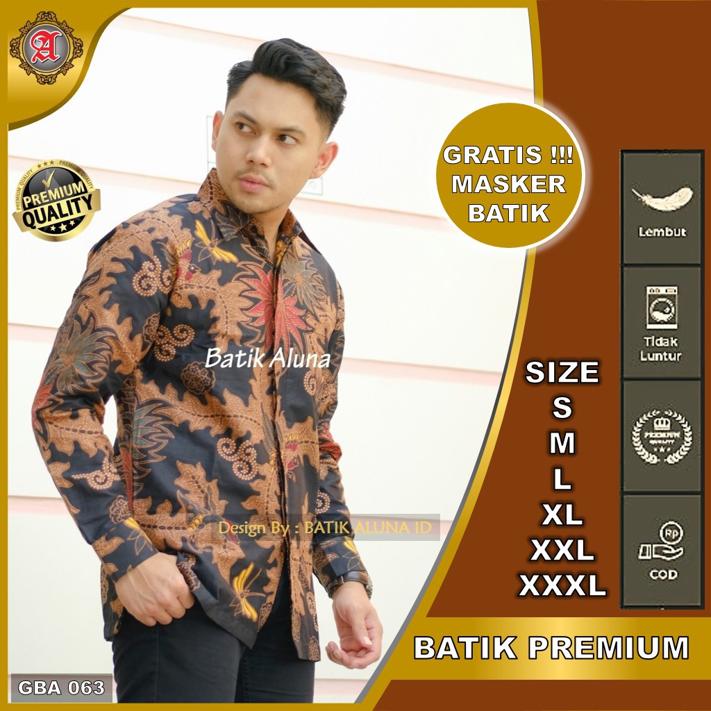 BATIK PRIA PREMIUM LENGAN PANJANG FULL FURING GBA 063 (FREE MASKER BATIK)