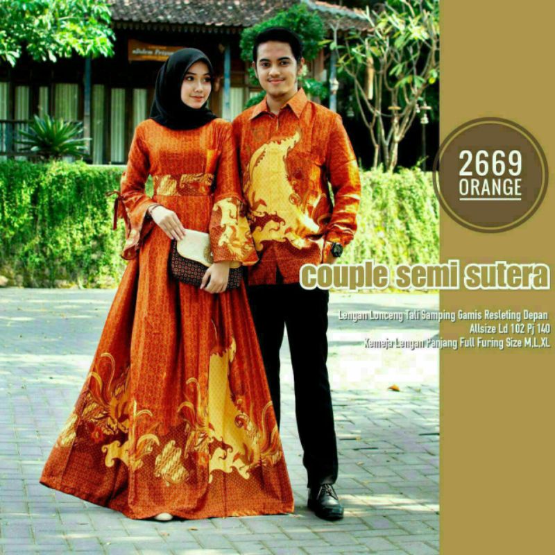 Name: Batik Couple Deluxe Semi Sutera 2919 Batik Sarimbit Mewah Pesta Merah Oranye Oren Hitam Furing
